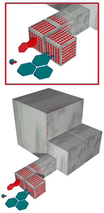 The smaller the bricks, the finer the control we have over this 'digital matter'. Large bricks are electromechanical robotic devices, but as they diminish in size they will be fabricated using micro-machining and chip manufacturing techniques. Below 100 microns, they can use electrostatic motors until we get down to cubes of nano dimensions where the individual atoms become too big. At these scales, as our knowledge of surface chemistry improves, the robotic cubes will be able to interface directly with molecules opening up new avenues for exploring the manufacture of nanotechnology devices.