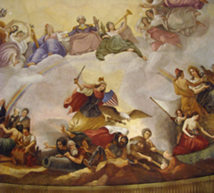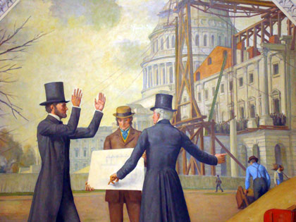 President Abraham Lincoln wills the Capitol Dome to rise. Painting by Allyn Cox, House wing, first floor of the U.S. Capitol