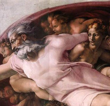 God is wrapped in a purple cloak or mantle within the shape of a cross-section of the right side of the brain. On close examination, the borders in the painting correlate with sulci in the inner and outer surface of the brain, the brain stem, the basilar artery, the pituitary gland and the optic chiasm. Michaelangelo’s message is God is a Thought