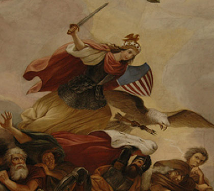 We can now appreciate the similarity between Michael and Freedom as the “guardian angel” of George Washington in the Apotheosis of George Washington in the Dome of the U.S. Capitol. Both are spiritual or ‘light warriors’ who stamp out tyranny in all its forms.